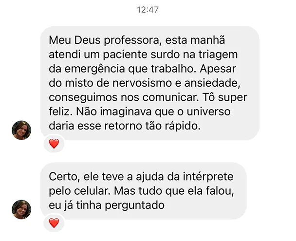 Ana C., Enfermeira "Atendi um paciente surdo na emergência. Conseguimos nos comunicar!" RESULTADO: Salvou uma vida com Libras
