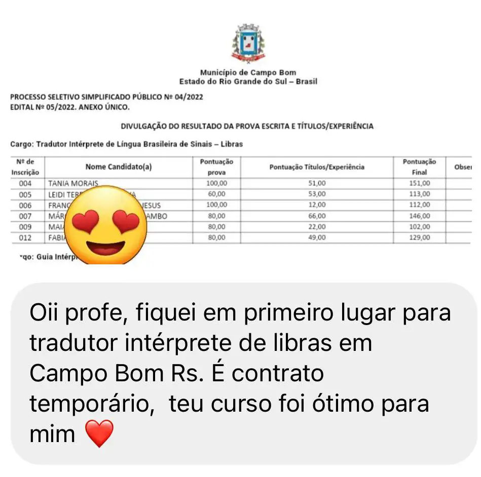 Carlos M., Aprovado em Concurso: "Fiquei em primeiro lugar para tradutor intérprete de Libras em Campo Bom RS. O certificado com reconhecimento do MEC foi decisivo para minha aprovação!"